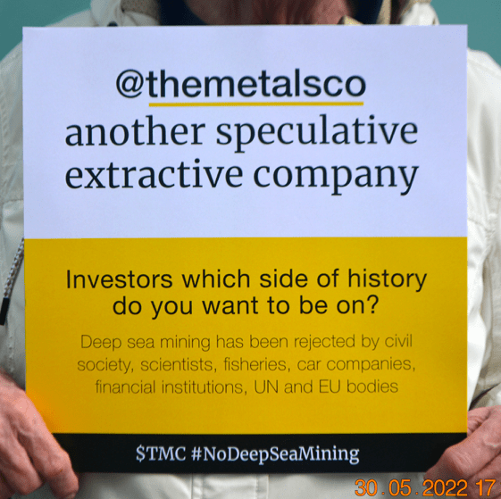 The AGM coincided with the launch of a critical counter-website that exposes TMC’s claims of being custodians of a metals commons, as opposed to simply another profit-seeking extractive industry company. The financial section of the site stresses the speculative nature of TMC’s business plan.
