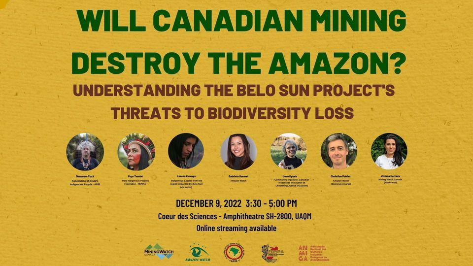 This panel discussion is part of the #ForaBeloSun – Belo Sun Out of the Amazon Campaign, to raise awareness and expose the connections between escalating deforestation rates, violent conflict and threats to biodiversity loss associated with Canadian mining in the Amazon.