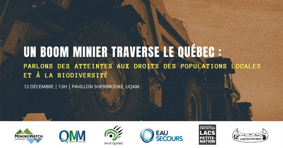 To answer these questions, our panel brings together representatives from the Long Point First Nation, concerned citizens and organizations specialized in mining issues, all of whom are aware of and have been confronted with this reality for too long.
