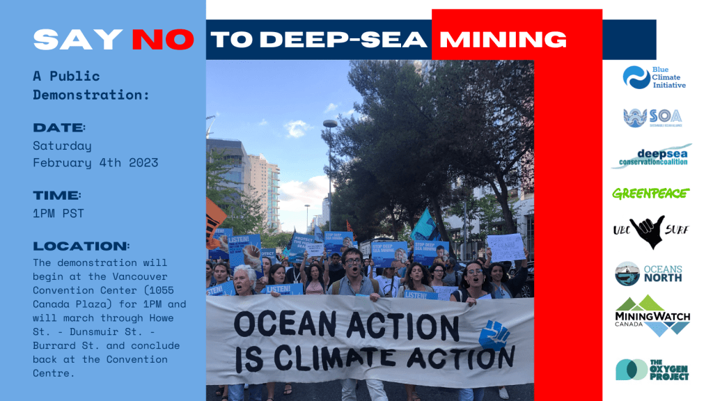Source: Blue Climate Initiative – Deep Sea Conservation Coalition – Greenpeace – MiningWatch Canada – Oceans North – Sustainable Ocean Alliance – The Oxygen Project – Ocean Uprise – UBC Surf Club